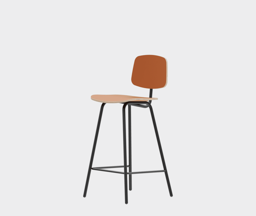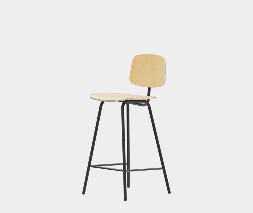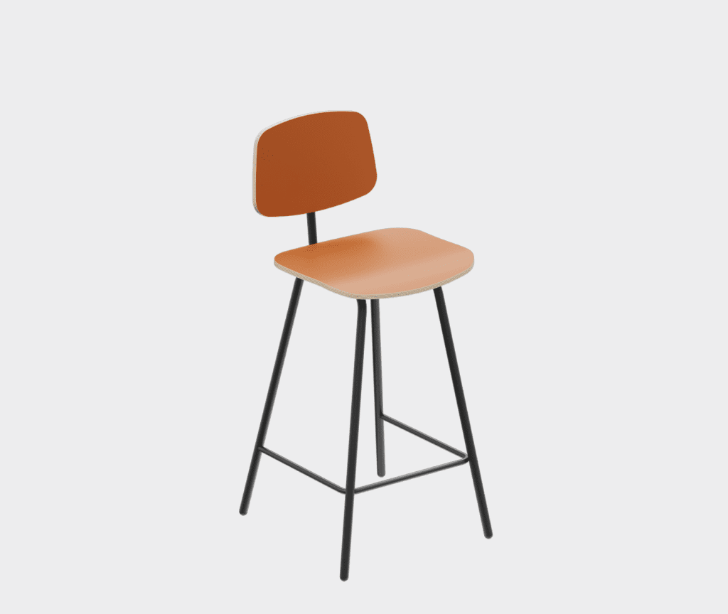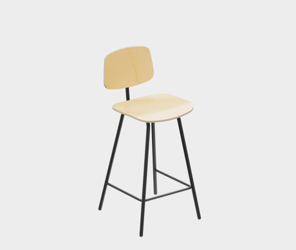 A simple chair in the democratic style of the sixties, a bar stool variation.