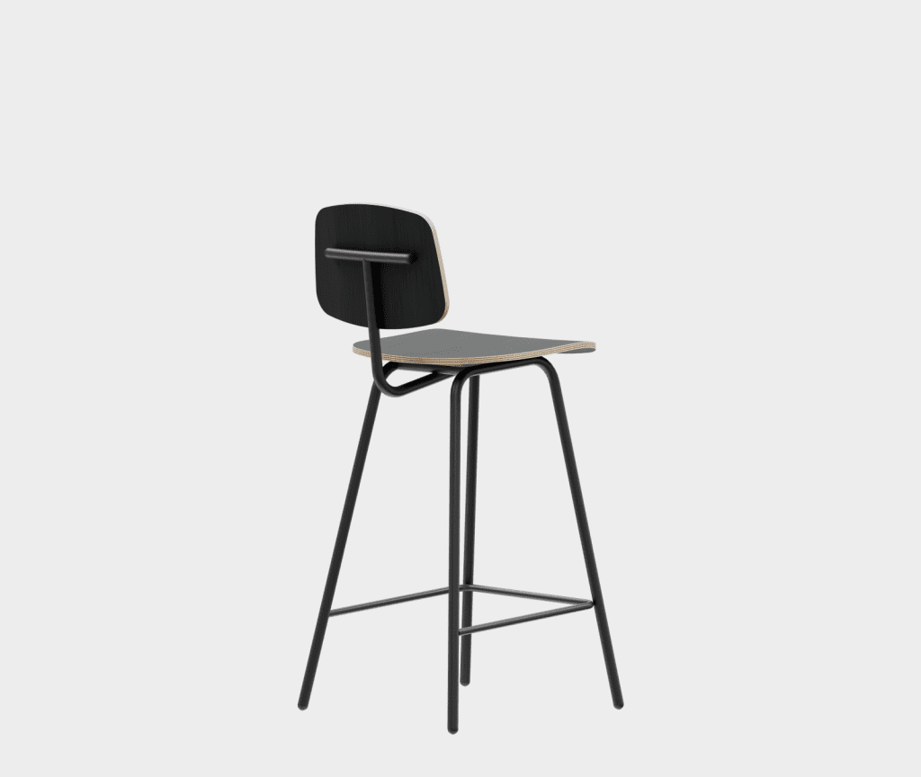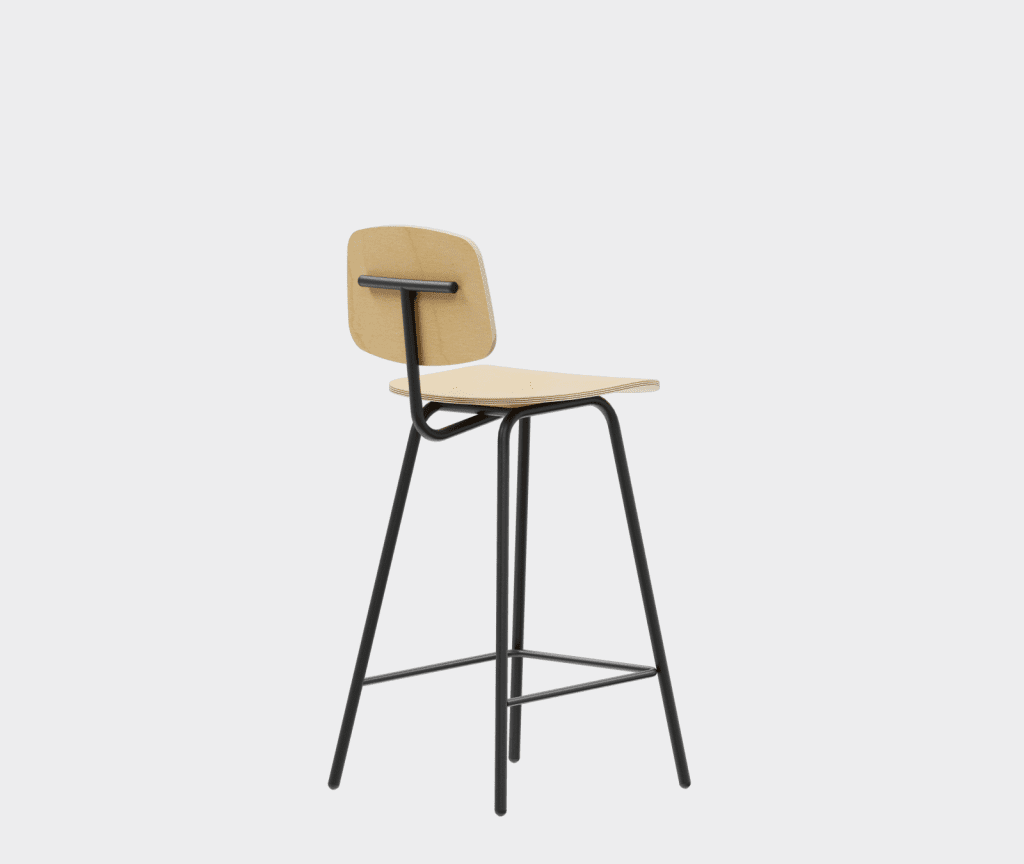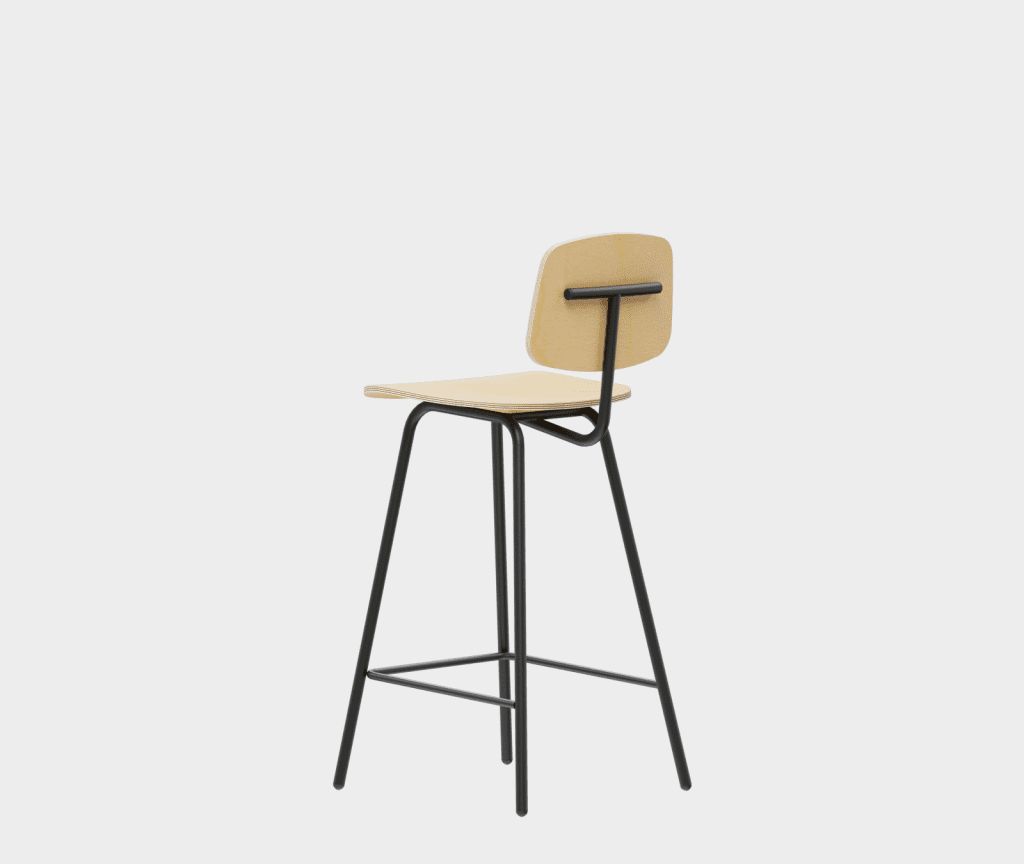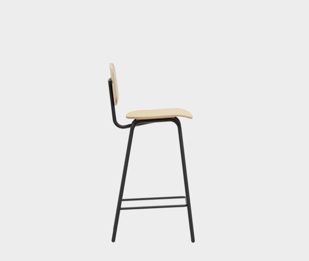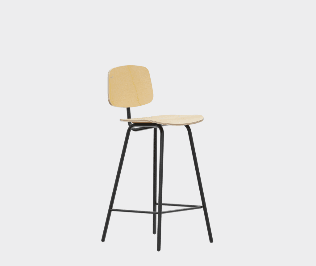 A simple chair in the democratic style of the sixties, a bar stool variation.