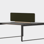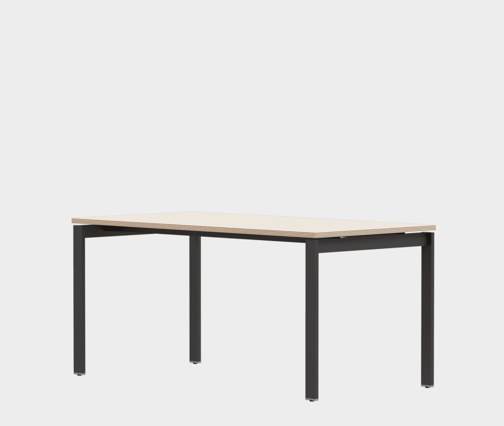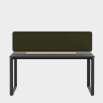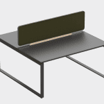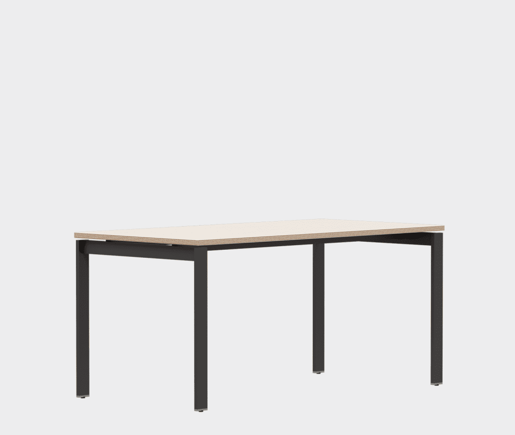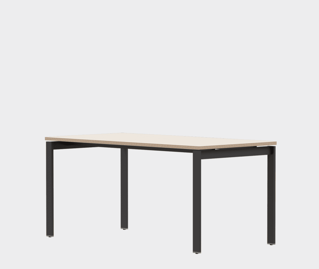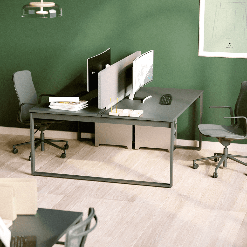Multifunctional office desk model of simple design. The size of the surface can be made to order. The surface and frame are available in various finishes, and accessories for workspace division are also available.