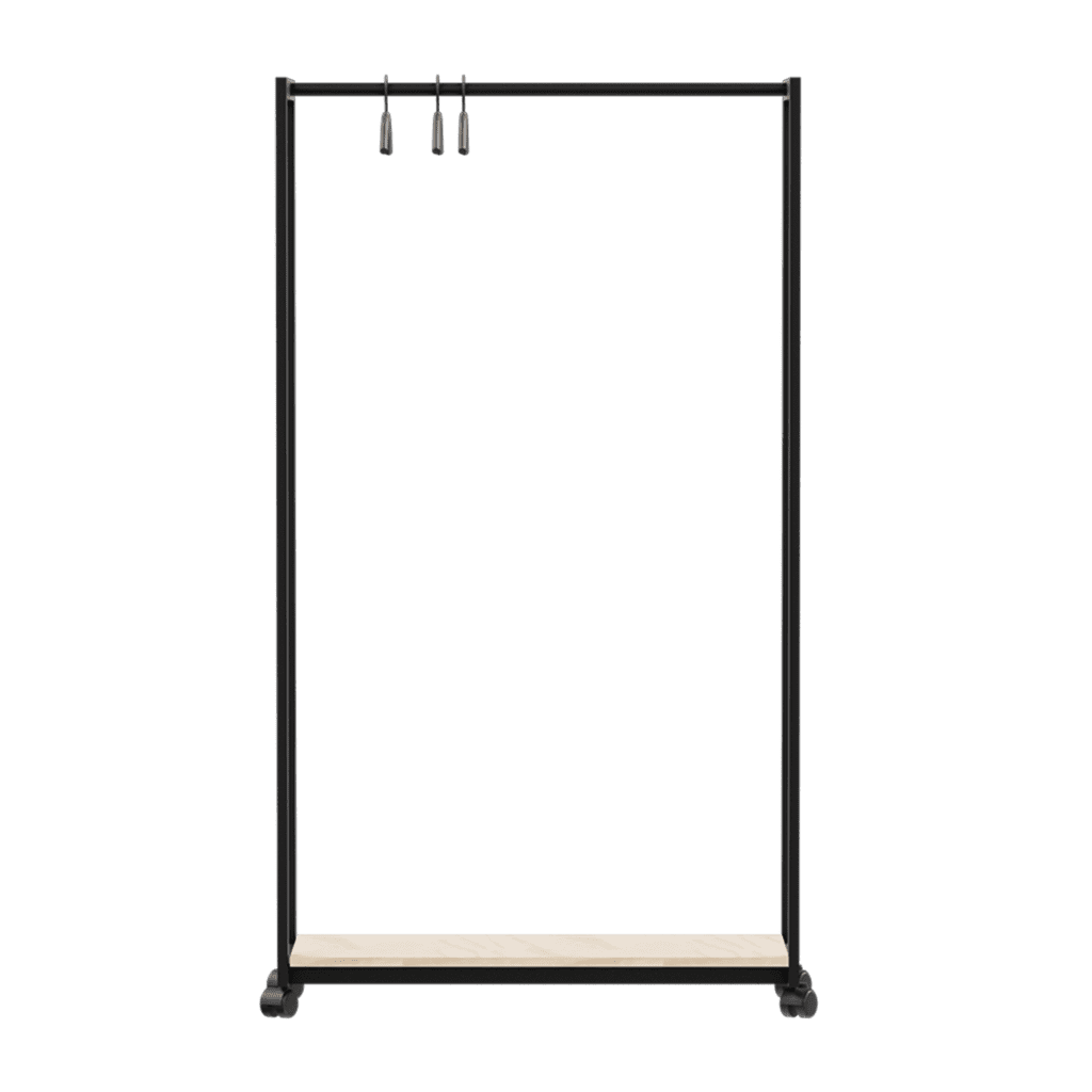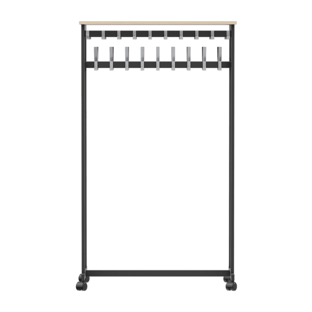 Uz ekscentriskiem riteņiem viegli pārvietojams garderobes statīvs