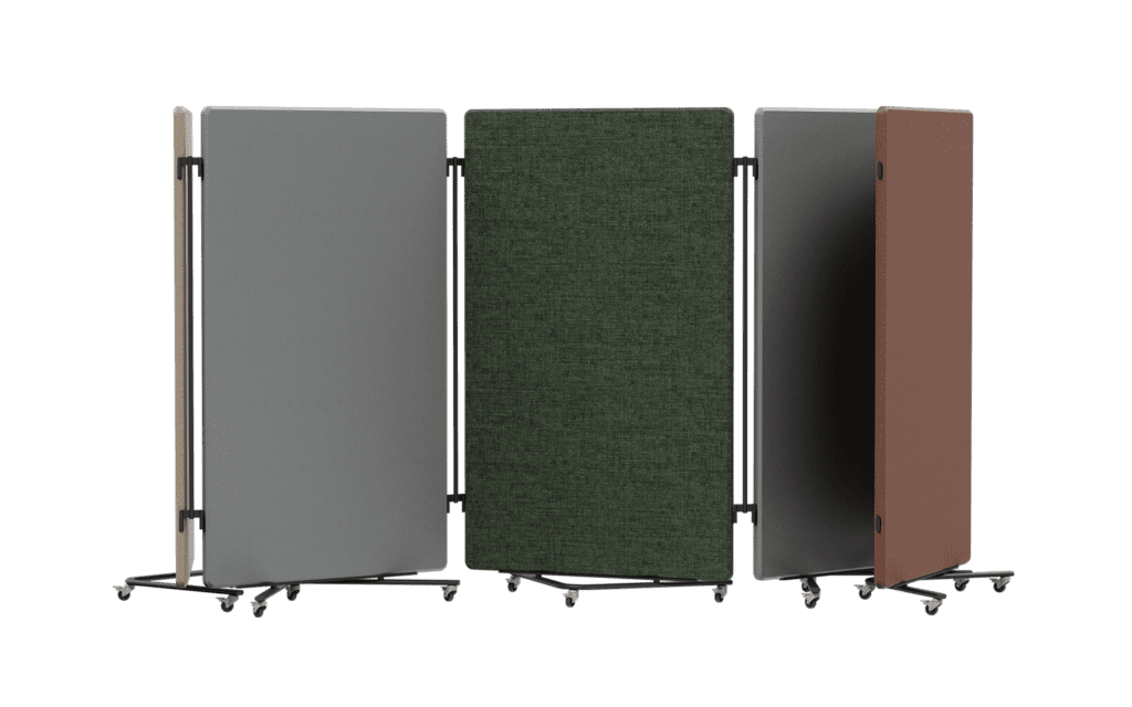Savienojami, tapsēti aizslietņu paneļi uz stabilas V formas riteņu pamatnes, kas palīdzēs norobežot vai sadalīt telpu