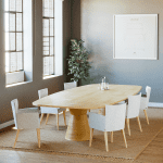 Galds kā centrālais objekts telpā. Piemērots lietošanai birojos un sabiedriskās telpās
