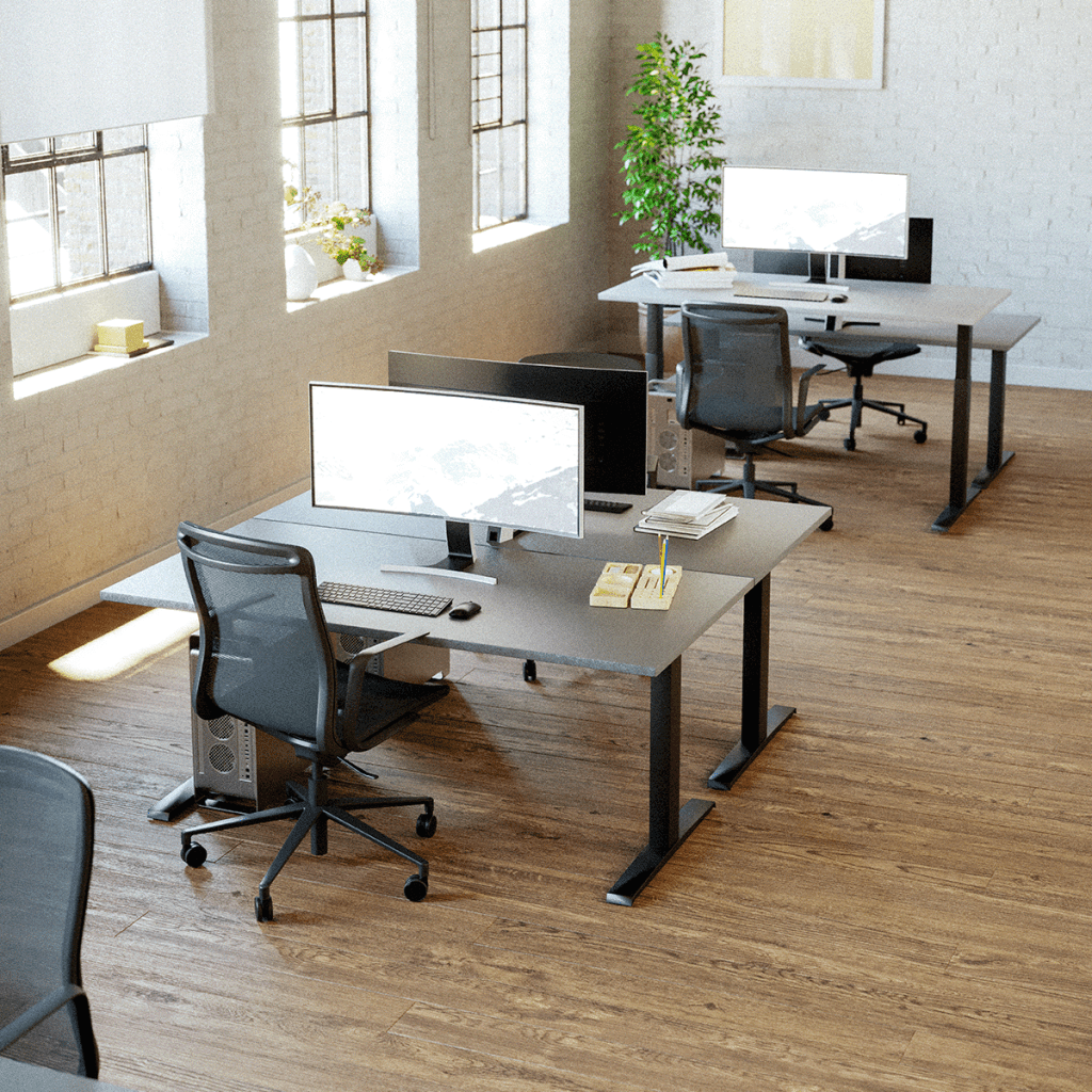 Augstumā regulējams darba galds. Balstrāmis aprīkots ar diviem motoriem un vadības pulti.