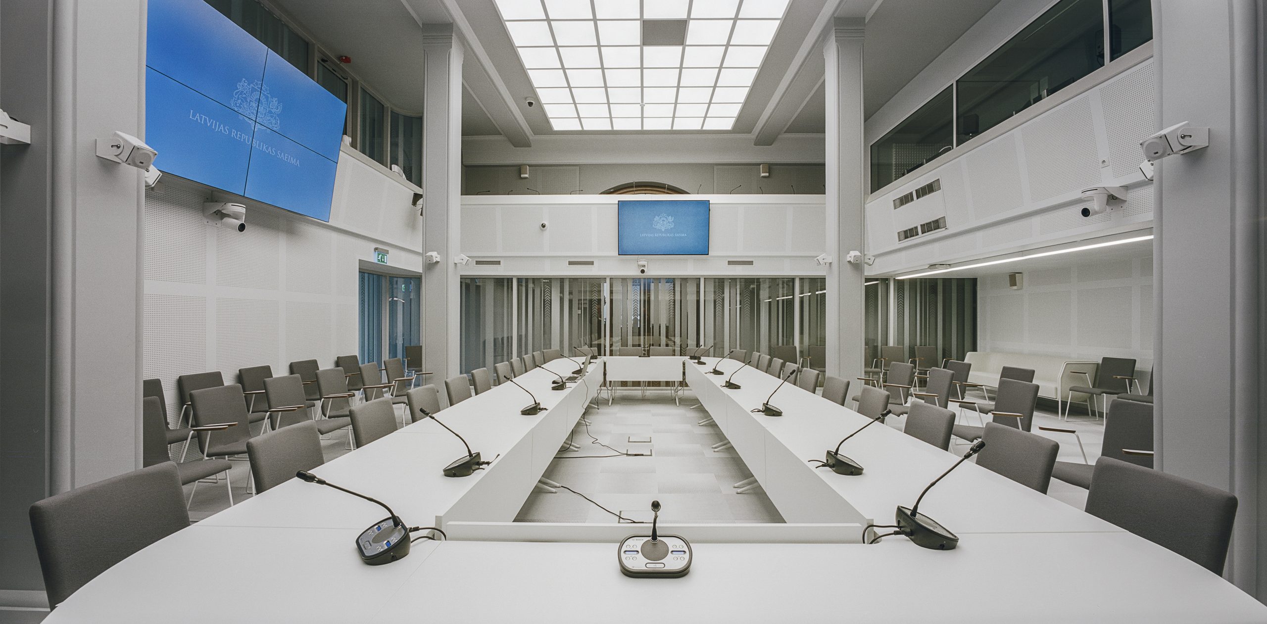 Latvijas Republikas Saeimas ēkā atrodami ARTICUL auditorijas krēsli un citas mēbeles.